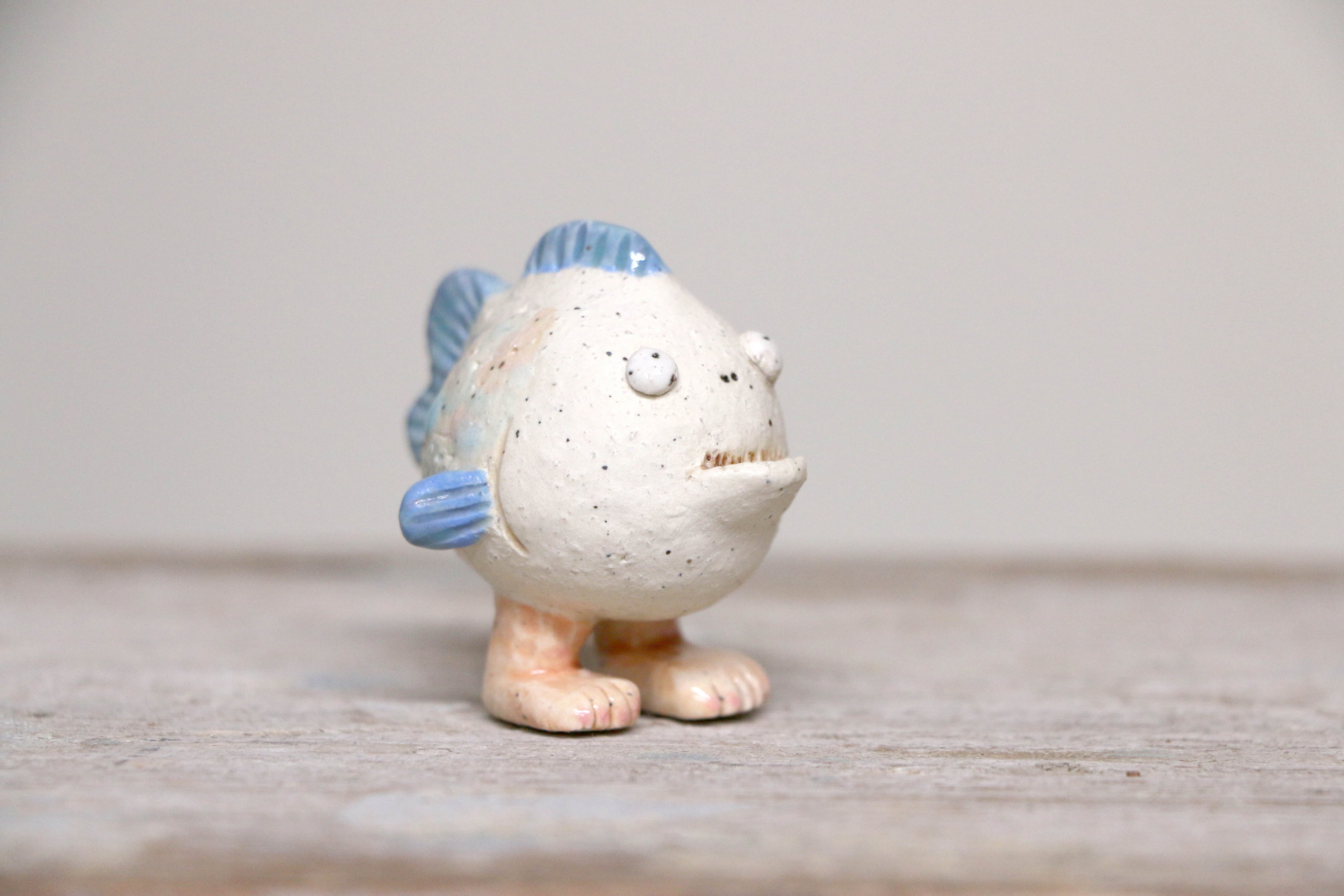 2足で歩く、しゃくれたお魚。